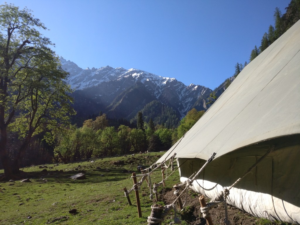 And finally I started trekking. It was around 8 hours terk daily and move to another camp. Every day we used to climb around 1500ft above sea level. The water in further camps was terribly cold, even I couldn’t wash my hands after having lunch or dinner. In such cases we used to use tissue papers (they help me in very critical situations). When we reached our highest camp i.e Nagaru Camp ( 12500ft) above sea level the scene was totally amazing and fabulous. Wherever I see, The thing only I was able to see is mountains covered with snow, it was like each and every mountain was covered with a white blanket and at that time snowfall started. I was immensely happy to counter snowfall in this early stage of my life in such height. I was totally fulfilled at that time.